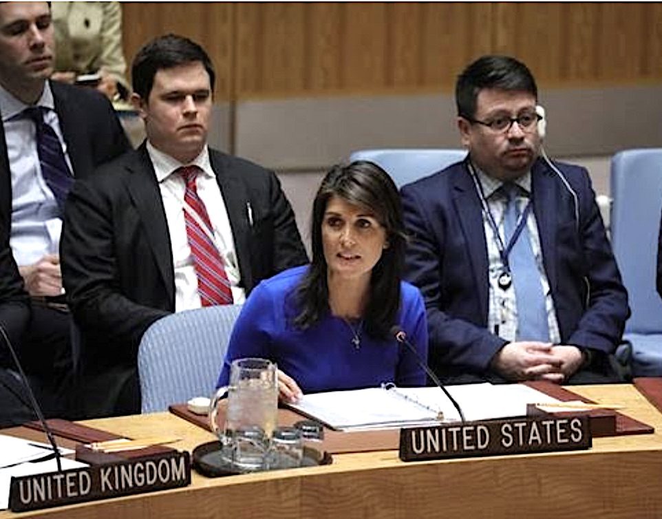 BİRLEŞMİŞ MİLLETLER (TURKISH JOURNAL) – ABD Başkanı Donald Trump Beyaz Saray’da askerin yönlendirmesiyle istemeye istemeye ABD’nin Suriye’de kalması yönünde karar alırken, ABD’nin Birleşmiş Milletler (BM) Daimi Temsilcisi Nikki Haley de BM Güvenlik Konseyi’nde (BMGK) Suriye’deki kimyasal silah saldırılarında sorumlulardan hesap sorulmadığını belirterek, Suriye’deki Esad rejimine ve Rusya’ya yüklendi.
