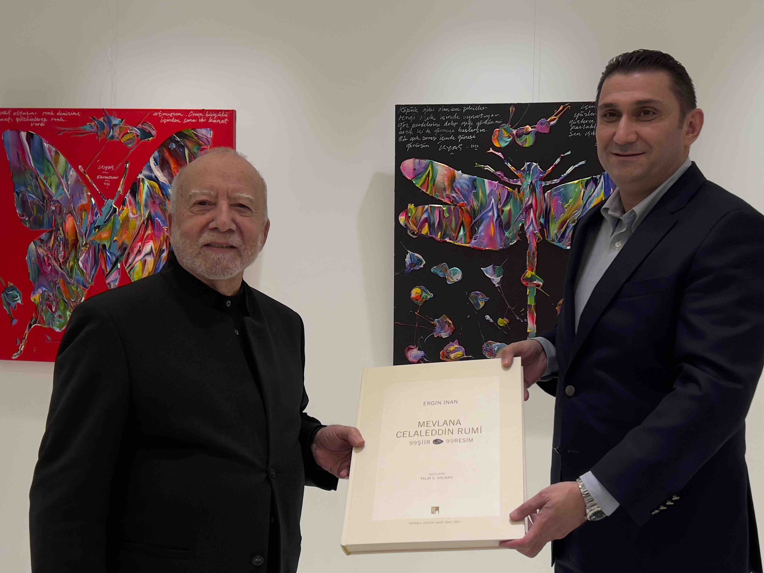 Ressam Prof. Dr. Ergin İnan imzalı Mevlana Celaleddin Rumi kitabını Başkonsolos Reyhan Özgür’e (Sağda) takdim ettim.