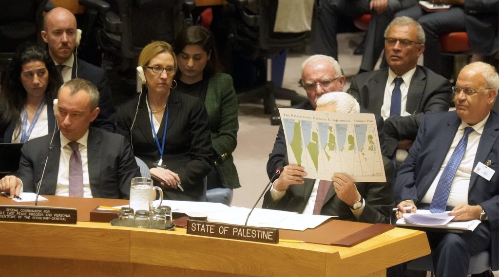 BİRLEŞMİŞ MİLLETLER (TURKISH JOURNAL) – Filistin Devlet Başkanı Mahmud Abbas Birleşmiş Milletler Güvenlik Konseyi (BMGK) ABD Başkanı Donald Trump’ın Ortadoğu barış planını İsrail’e bir hediye olduğunu ve Filistinliler tarafından kabul edilemeyeceğini bildirdi. Planı reddettiklerini bildiren Abbas, uluslararası bir konferans çağrısında bulundu. Abbas, yanında getirdiği haritayı ülke temsilcilerine göstererek, Filistinlilere kalan yerlerin parçalanmış bir “İsviçre peyniri” gibi göründüğünü söyledi.