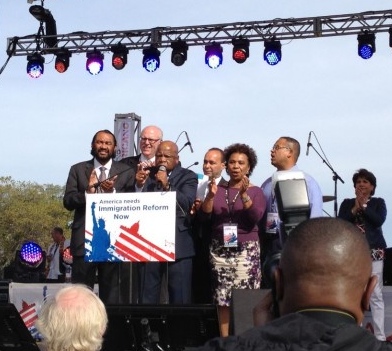 Parkların kapalı olmasına rağmen, özel izinle National Mall’da toplanan kalabalığa Washington Belediye Başkanı Vincent Gray, Demokrat Milletvekili Mario Diaz-Balart, Demokrat Parti New Jersey Senatörü Robert Menendez ve Temsilciler Meclisi Azınlık Lideri Nancy Pelosi hitaben bir konuşma yaparken, medyana toplanan kalabalığın büyük bir çoğunluğunu Hispanik kökenliler oluşturdu.