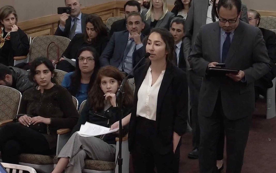 Oturumda gençler, Türk kökenli Kaliforniyalı Amerikan vatandaşı olarak senatörlere gündeme getirdikleri konudan dolayı “utanç” duymaları gerektiğini yüzüne karşı çarpıcı şekilde dile getirdiler.