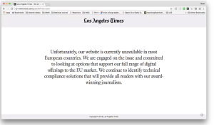 Yönetmeliğin 25 Mayıs Cuma günü yürürlüğe girmesi üzerine Avrupalı internet kullanıcıları, Los Angeles Times, Baltimore Sun, New York Daily News ve Chicago Tribune gibi Amerikan gazetelerinin internet sitelerine ulaşamadılar.