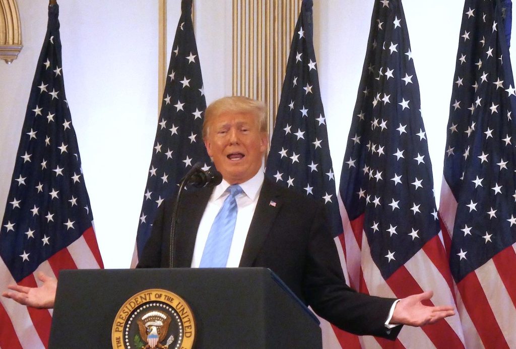 Demokrat Parti’nin adayı Biden’ın, rakibi Trump’a karşı delege sayısında 238-213 önde olmasına ve oy sayımının henüz sonuçlanmamasına rağmen, Trump, eski manken eşin Marla Maples’dan olan kızı Tiffany Trump’ın sözlüsü Filistin doğumlu genç iş adamını da yanına alarak tüm aile üyeleriyle birlikte Beyaz Saray’da düzenlediği basın toplantısında kazandığını iddia etti.