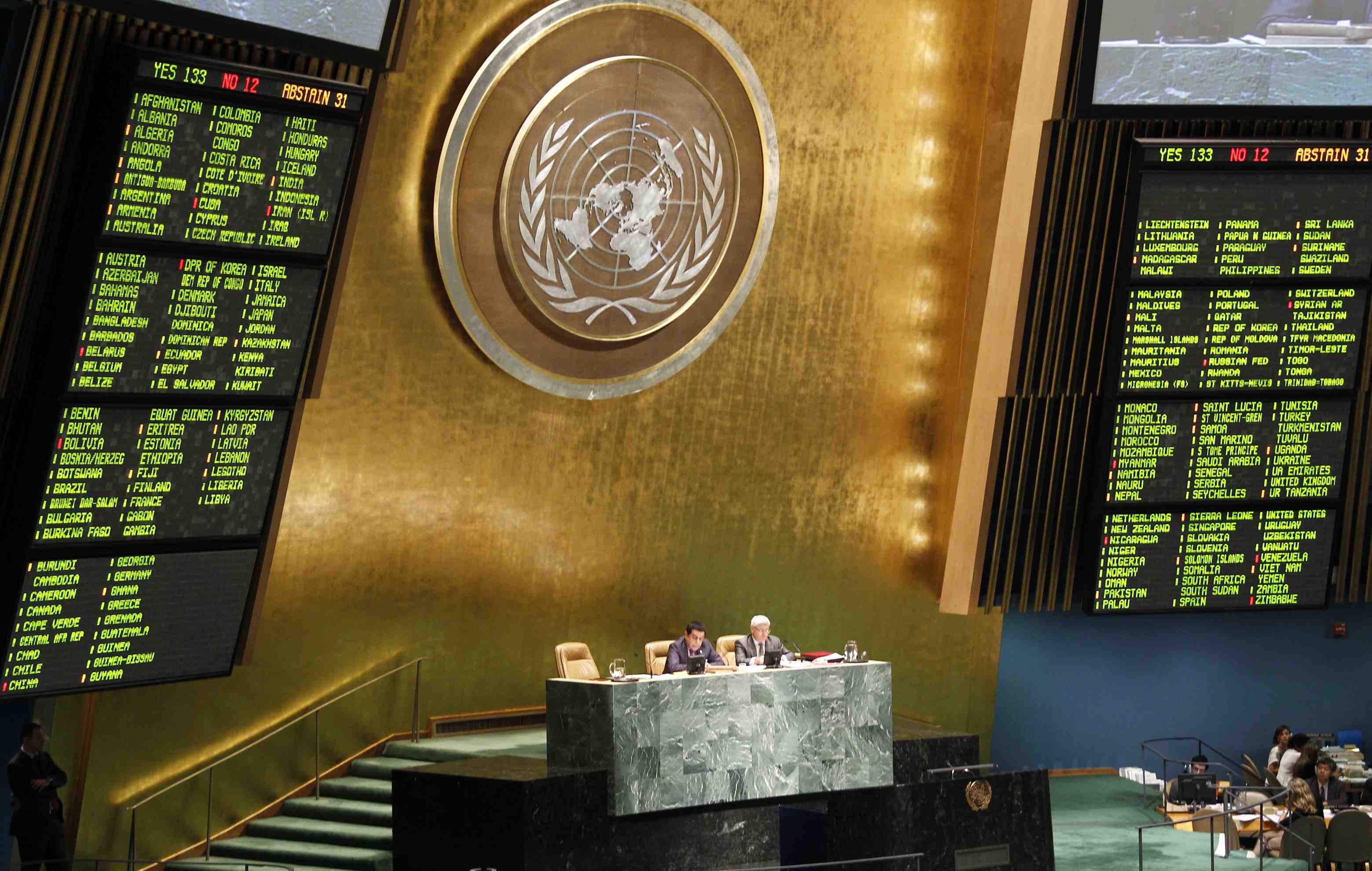 Birleşmiş Milletler (BM) Güvenlik Konseyi (BMGK) yoluyla kınayamadığı Suriye’yi, 10 binlerce kişi öldükten sonra Genel Kurulu’da aldığı kararla kınayarak, taraflardan silah bırakmalarını ve şiddete derhal son vermeleri istedi.