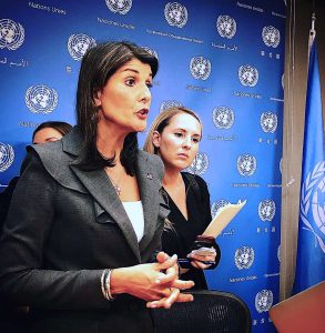 BİRLEŞMİŞ MİLLETLER (TURKISH JOURNAL) – Selçuk Acar – ABD’nin Birleşmiş Milletler (BM) Daimi Temsilcisi Nikki Haley, Rusya’nın Suriye’nin kuzeybatısındaki İdlib’e hava operasyonu düzenlemesinin ardından yaptığı açıklamada, BM Güvenlik Konseyi’nin (BMGK) cuma günü bu konuda bir toplantı düzenleyeceğini ve kimyasal silah kullanılması durumunda ABD’nin cevap buna vereceğini bildirdi. Büyükelçi Haley ayrıca, ABD Başkanı Donald Trump’ın BMGK’nın İran konulu toplantısına başkanlık edeceğini duyurdu.