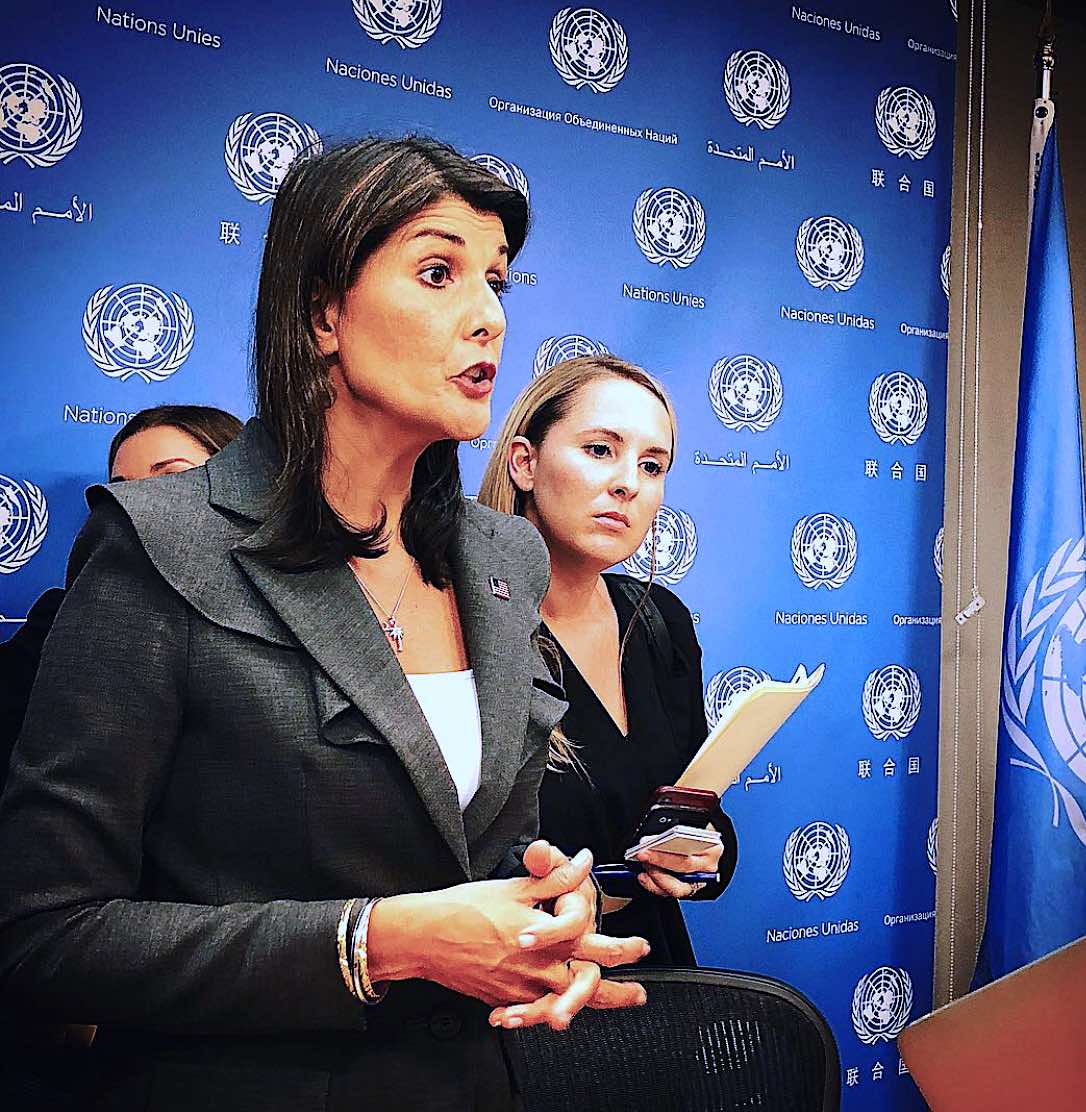 ABD’nin en gözde ve üst düzey diplomatik makamlarından birinde bulunan Hint asıllı Büyükelçi Haley’in toplantıda, daha önce valilik yaptığı Güney Carolina’nın dahil olduğu bölge (Güney) kültürü vurgusu yaptığı ve önceye göre daha fazla gülümsediği görüldü.
