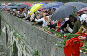Savaş Mağduru Kadınlar Derneği Başkanı Bakira Haseçiç, burada yaptığı konuşmada, Drina Köprüsü’nün UNESCO Dünya Mirası Listesi’nde yer alan ”En kanlı köprü” olduğunu söyledi.