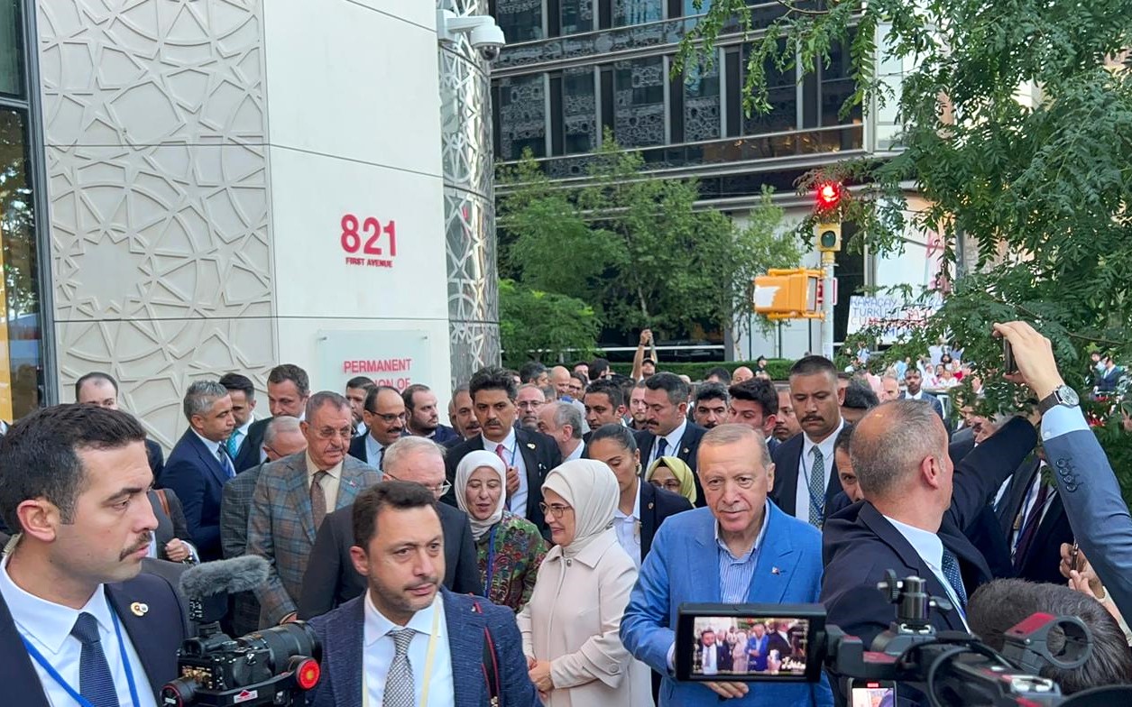 Cumhurbaşkanı Erdoğan ile eşi Emine Erdoğan, Dışişleri Bakanı Hakan Fidan, Hazine ve Maliye Bakanı Mehmet Şimşek, Enerji ve Tabii Kaynaklar Bakanı Alparslan Bayraktar, Ticaret Bakanı Ömer Bolat, Çevre, Şehircilik ve İklim Değişikliği Bakanı Mehmet Özhaseki, Aile ve Sosyal Hizmetler Bakanı Mahinur Özdemir Göktaş, Sanayi ve Teknoloji Bakanı Mehmet Fatih Kacır, MİT Başkanı İbrahim Kalın, Cumhurbaşkanlığı İletişim Başkanı Fahrettin Altun, Cumhurbaşkanı Başdanışmanı Büyükelçi Akif Çağatay Kılıç, AK Parti Genel Başkanvekili Binali Yıldırım, AK Parti Sözcüsü Ömer Çelik ve bazı devlet yetkilileri de beraberinde New York’a geldi.