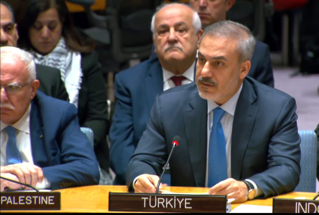 Fidan, ABD’nin New York kentinde Birleşmiş Milletler Güvenlik Konseyi’nde (BMGK) üst düzey İsrail-Filistin oturumunda konuştu.