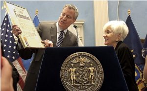 Bill de Blasio Olympia Dukakis’a o günü “Olympia Dukakis Günü “ olarak belirleyen bir bildiri sundu.