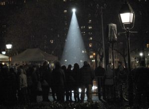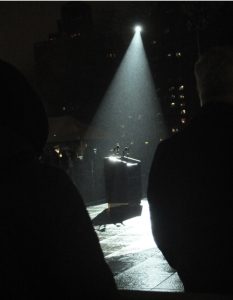 I am sure the lectern was there for Mayor de Blasio and First Lady to open the night’s event, to light the arch. But just seeing the spotlight on an empty podium in a rainy evening, hearing Martin Luther King Jr.’s “I’ve Been to the Mountaintop” speech was eerie enough to give one goosebumbs.