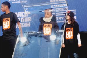 Very young speakers, wearing t-shirts with “Guns Down Life Up” sign were demanding gun control.