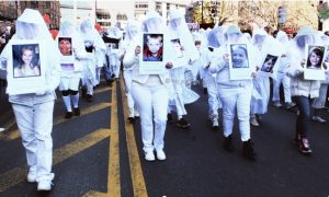 A group of marchers were carrying the pictures of victims.
