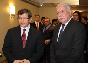 Dışişleri Bakanı Davutoğlu, Filistin’in BM’deki ‘gözlemci kuruluş’ statüsünün ‘üye olmayan gözlemci devlet’ konumuna yükseltilmesi konusundaki tasarının yarın BM Genel Kurul’una üye 193 ülkenin oyuna sunulmasından önce, Filistin Devlet Başkanı Abbas’la bir araya geldi. Görüşmenin ardından Davuoğlu ile Filistin’li mevkidaşı Riyad Maliki birlikte basına açıklamalarda bulundu.