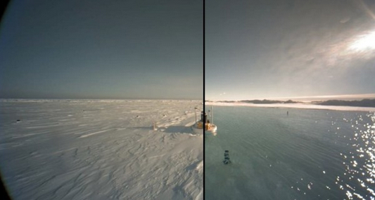 Kuzey Kutbu Çevresel Gözlemevi’nin Atlantic Wire’de yayınlanan rapor ve fotoğraflarına göre, kutuplarda iki hafta boyunca devam eden sıcak havalar yüzünden Temmuz başından itibaren eriyen buzullar göl oluşturmaya başladı.
