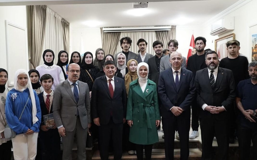 Minister Mahinur Özdemir Göktaş came together with earthquake-affected citizens in Qatar, Turkish students studying at Qatar University, as well as students and teachers at the Turkish school, at the Doha Yunus Emre Institute.