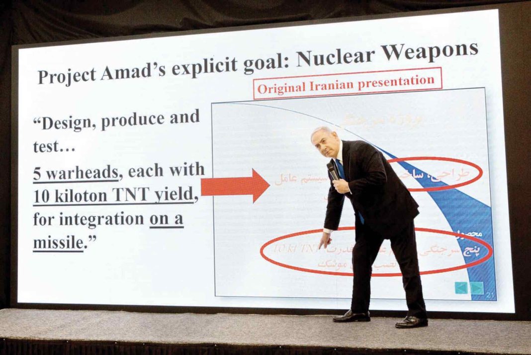 Netanyahu Savunma Bakanlığı’ndaki sunumunda, İsrail istihbaratı tarafından ele geçirildiği belirtilen 55 bin sayfa dolusu “delil” ile 183 CD’deki 55 bin dosyanın İran’ın “Amad Projesi” adlı nükeer silah programıyla bağlantılı olduğunu savundu.