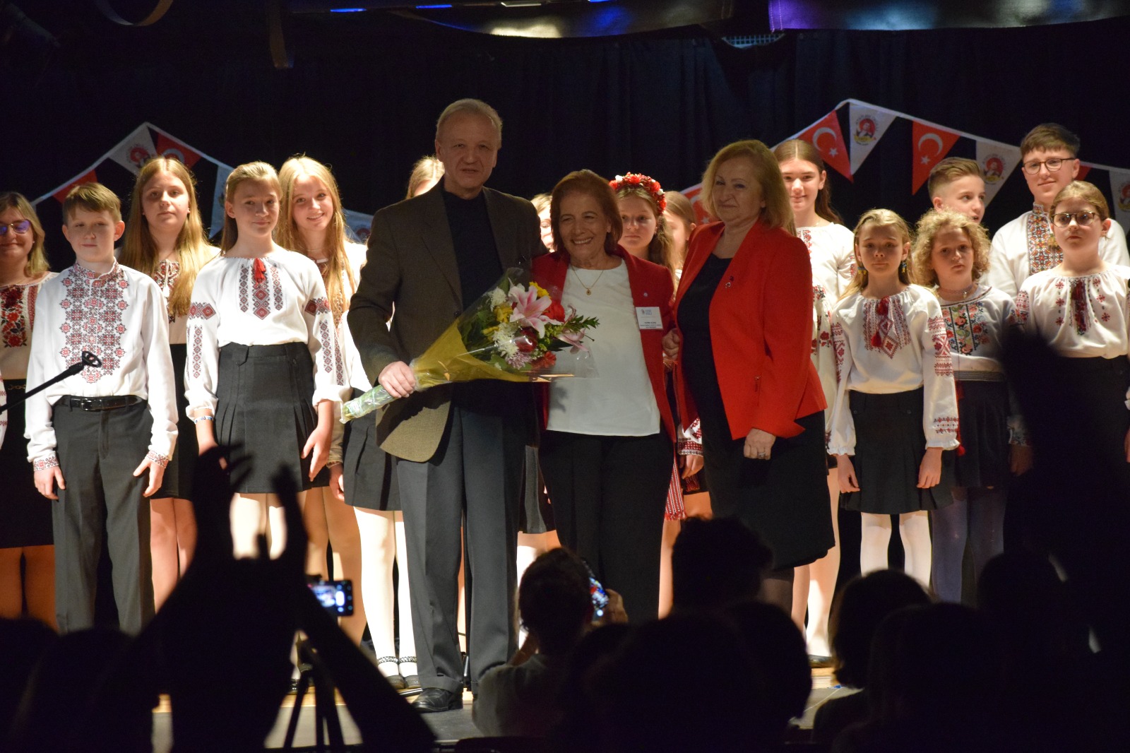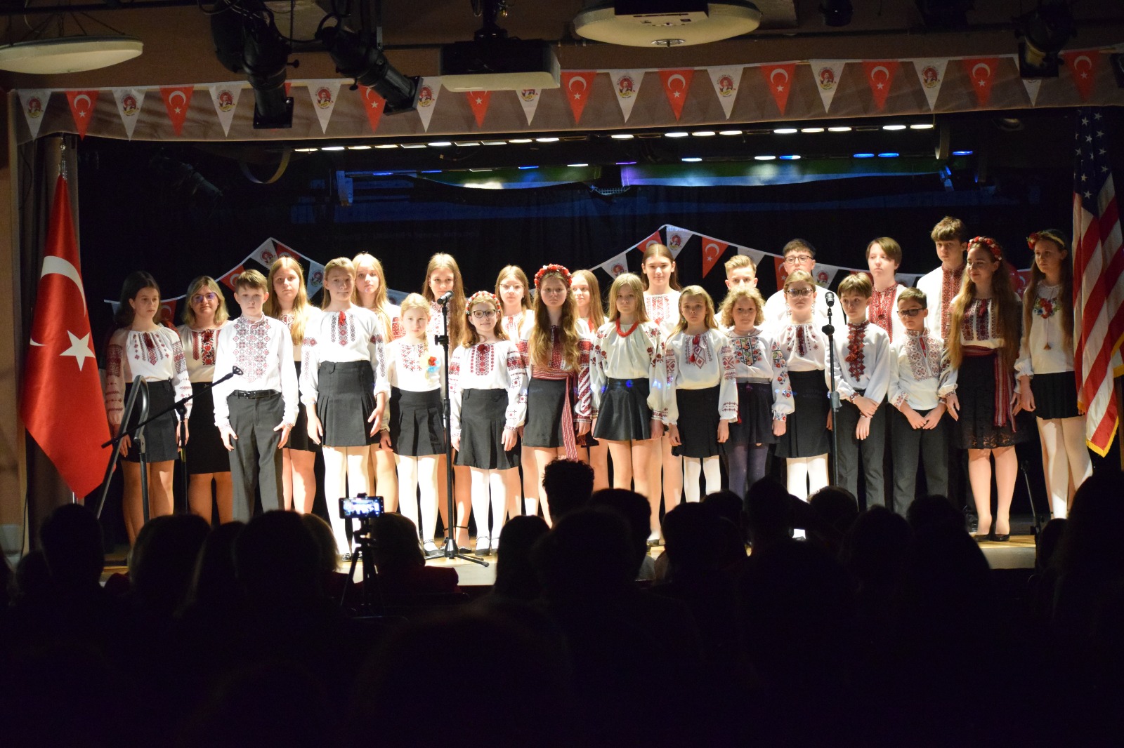 23 Nisan kutlamaları için ayrı bir hazırlık yapan ünlü Orkestra Şefi ve Aranjör Vasyl Hrechnysky “Ukarinian Children’s Chorus Dumka of New York” korosu şarkılarıyla kutlamalara renk kattı. Performans sonrasında ünlü Orkestra Şefi’ne okul yönetimi çiçek verdi.