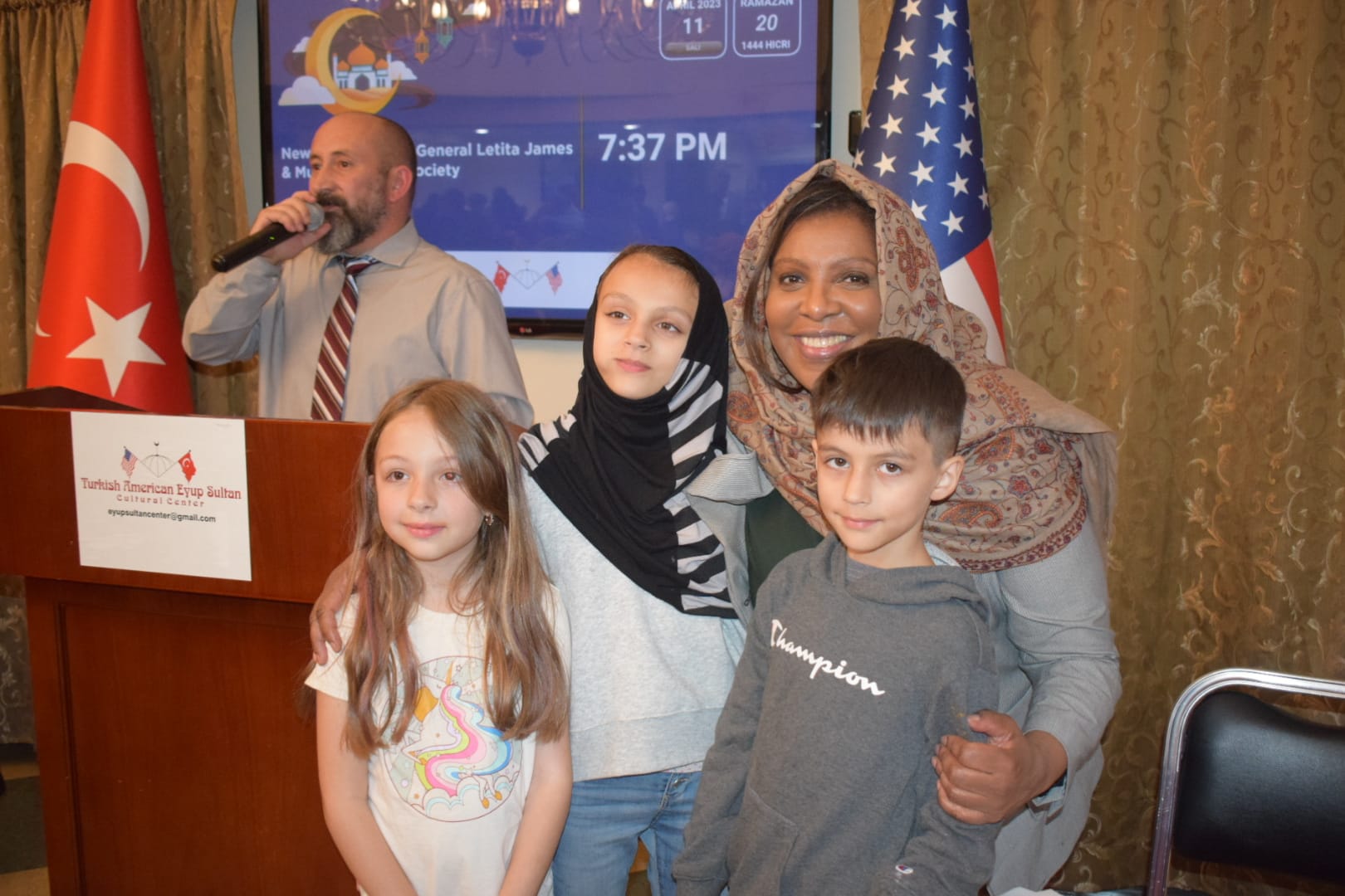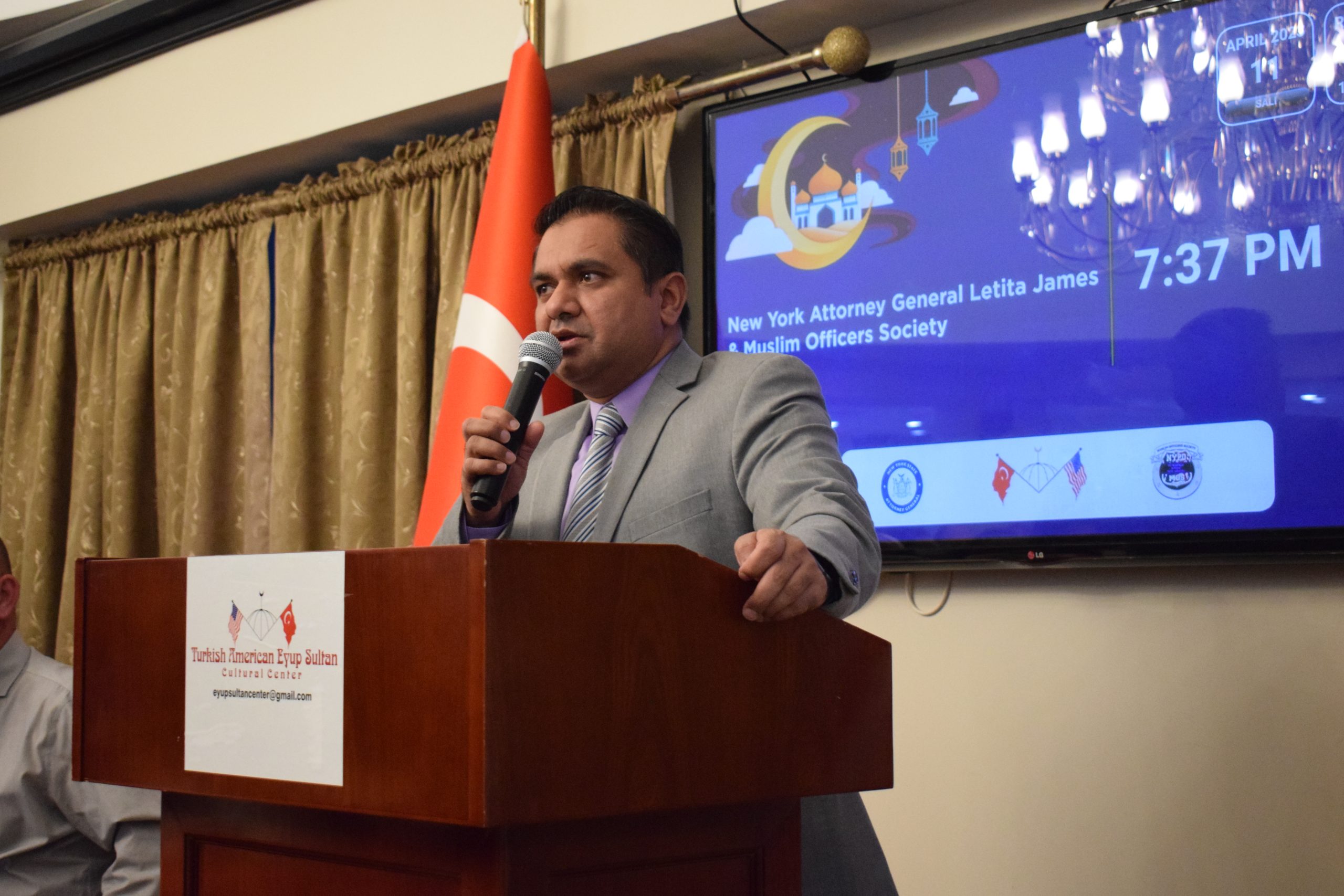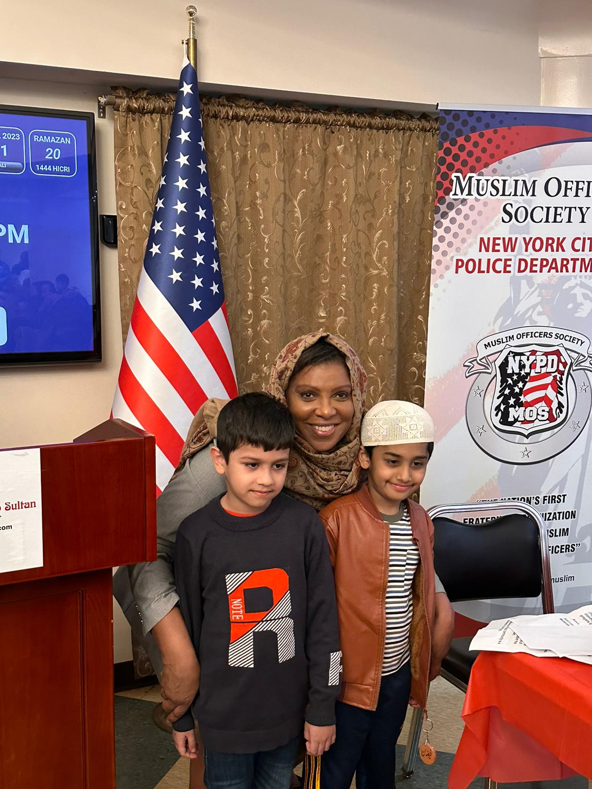 NEW YORK (TURKISH JOURNAL) – Dilek Kaya – New York Başsavcısı Letitia James, New York Polis Teşkilatı (NYPD) Müslüman Polisler Derneği ile birlikte Brooklyn’deki Eyüp Sultan Camisi’nde New York’ta yaşayan Müslüman toplumuna iftar yemeği verdi.