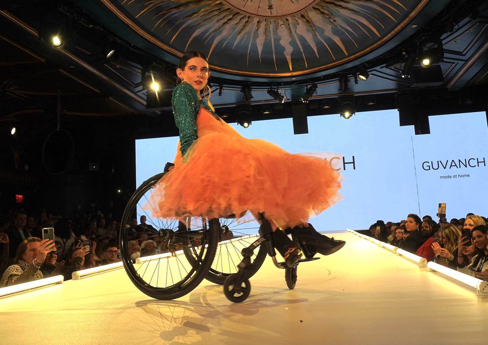 Türk asıllı tasarımcı Guvanch’ın defilesinde podyuma çıkan engelli manken performansıyla büyük alkış topladı.