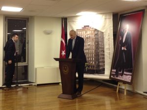 Başkonsolos Levent Bilgen’in evsahipliğinde gerçekleştirilen kutlamaya, BM Daimi Temsilcisi Büyükelçi Halit Çevik, Türkiye’nin yeni Dakka Büyükelçisi Hüseyin Müftüoğlu, BM Daimi Temsilci Yardımcısı Salih Mutlu Şen, KKTC New York Temsilcisi ve diğer davetliler katıldı.