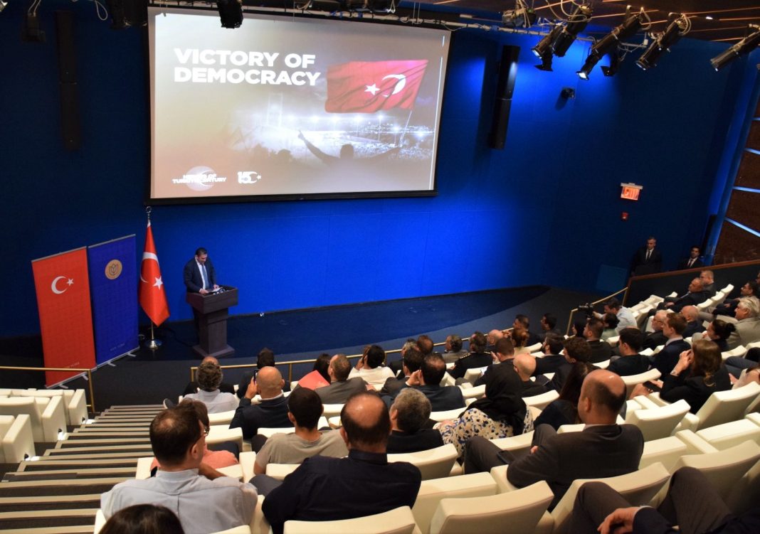 New York’taki Türkevi’nde 15 Temmuz Demokrasi ve Milli Birlik Günü anma programı düzenlendi. Programa Türkiye’nin Birleşmiş Milletler (BM) Daimi Temsilcisi Büyükelçi Sedat Önal, Türkiye’nin New York Başkonsolosu Reyhan Özgür, yerli ve yabancı diplomatik misyon çalışanları ve çeşitli sivil toplum kuruluşlarından temsilciler ile vatandaşlar katıldı.