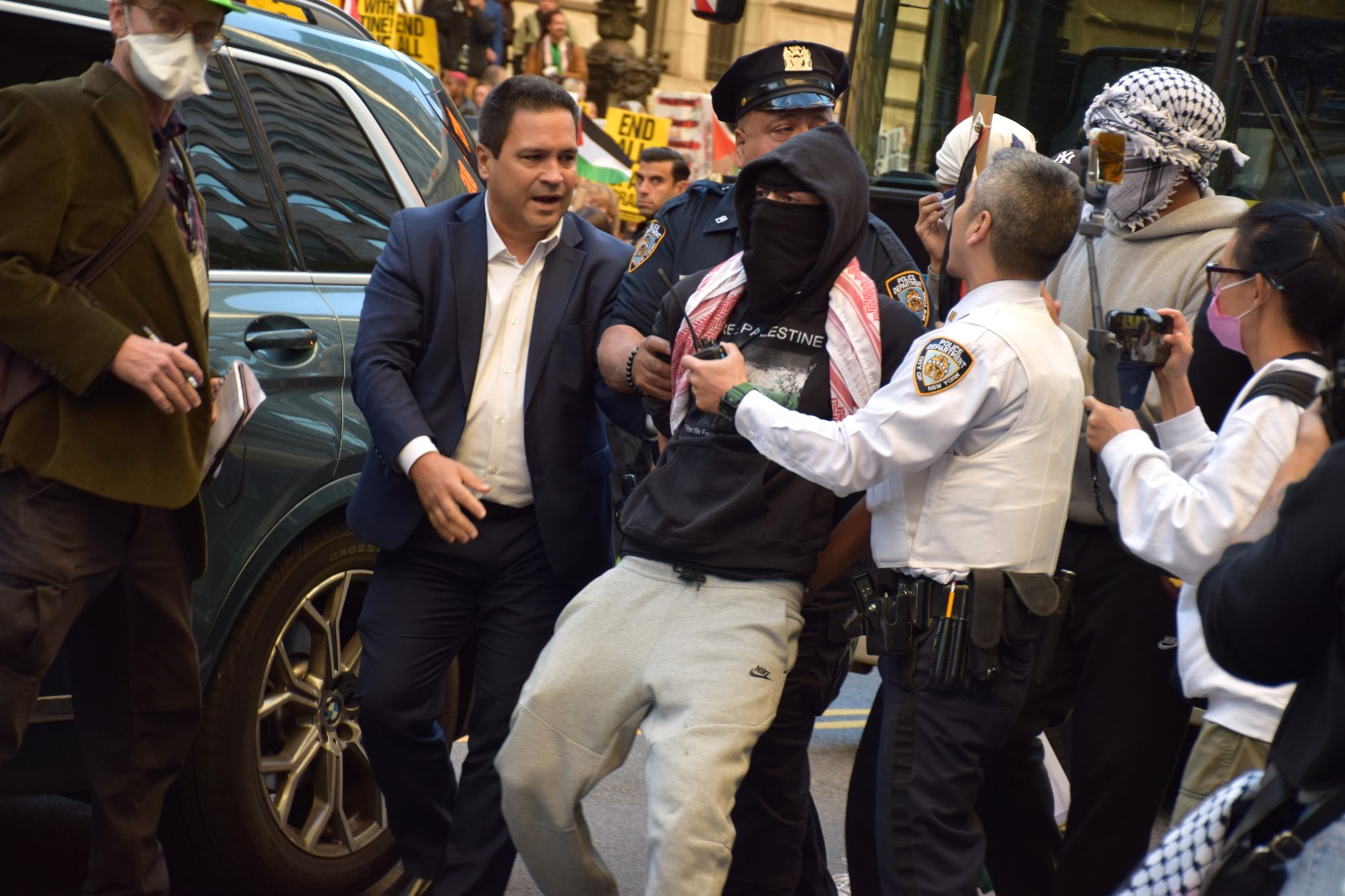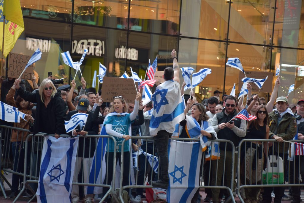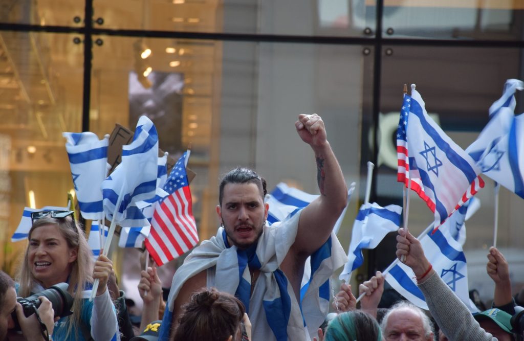 Aynı anda İsrail’li protestocularında karşı kaldırımda toplanmaya başlamasıyla birlikte zaman zaman gergin anlar yaşandı.