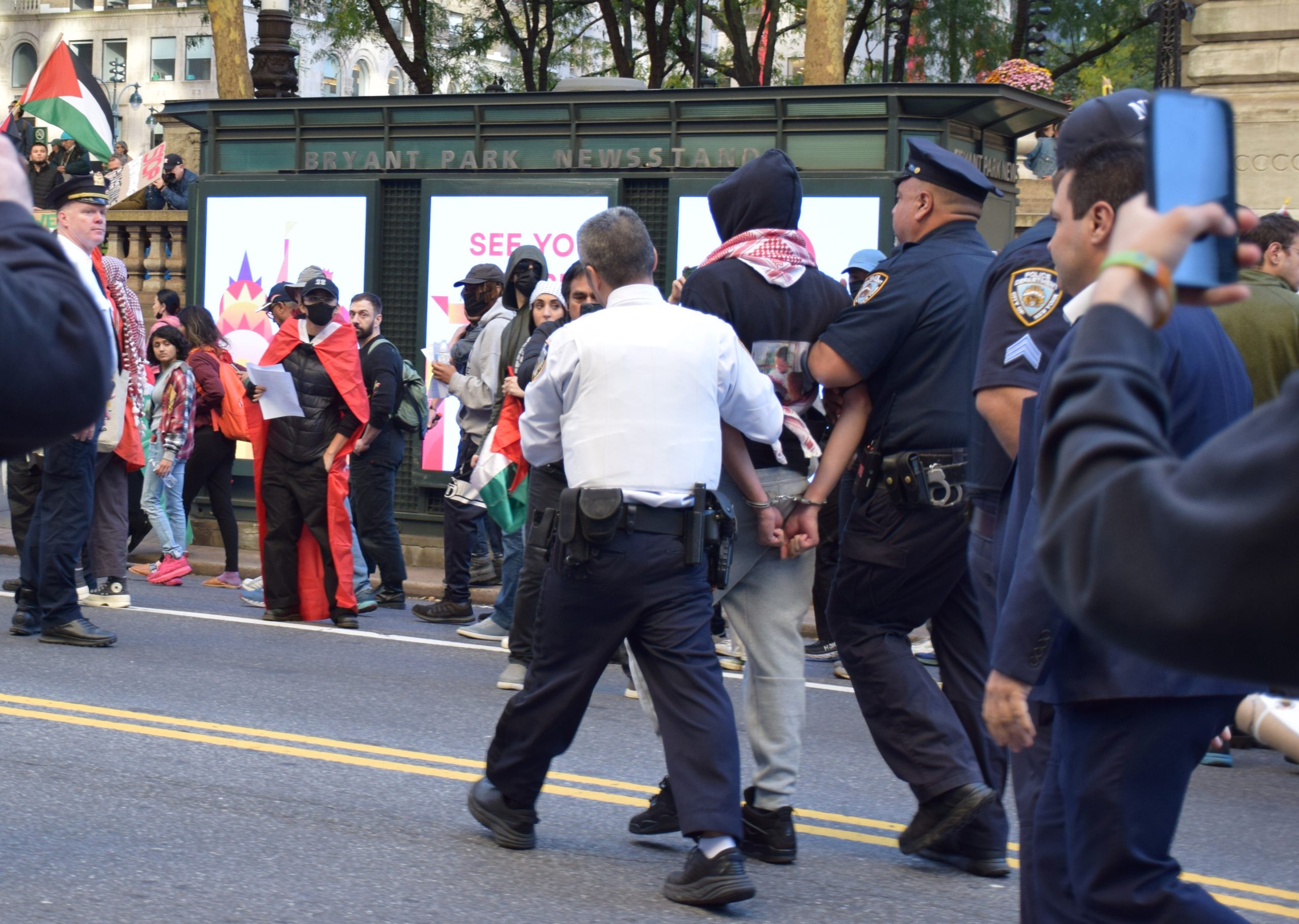Düzenlenen gösteri, Birleşmiş Milletler binasının bulunduğu 1. Cadde 47. Sokakta, Birleşmiş Milletler aleyhine atılan sloganların ardından sonlandırıldı.