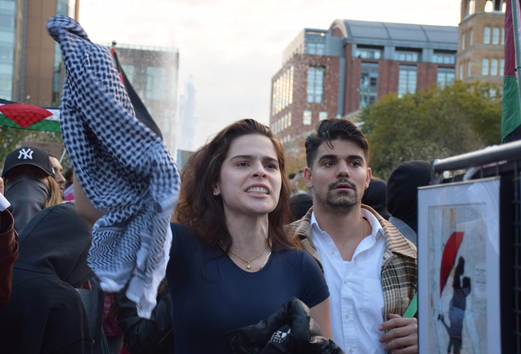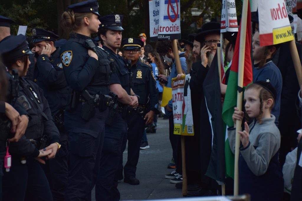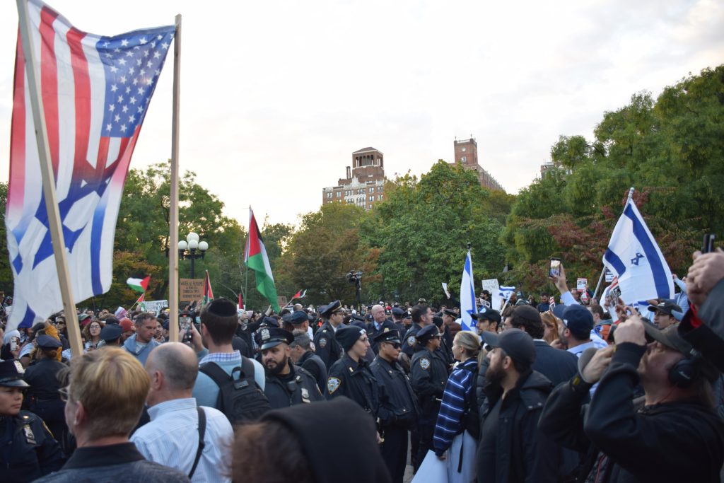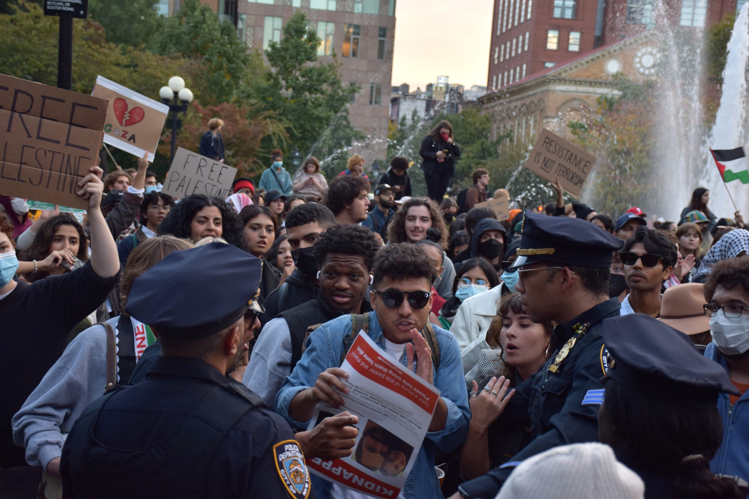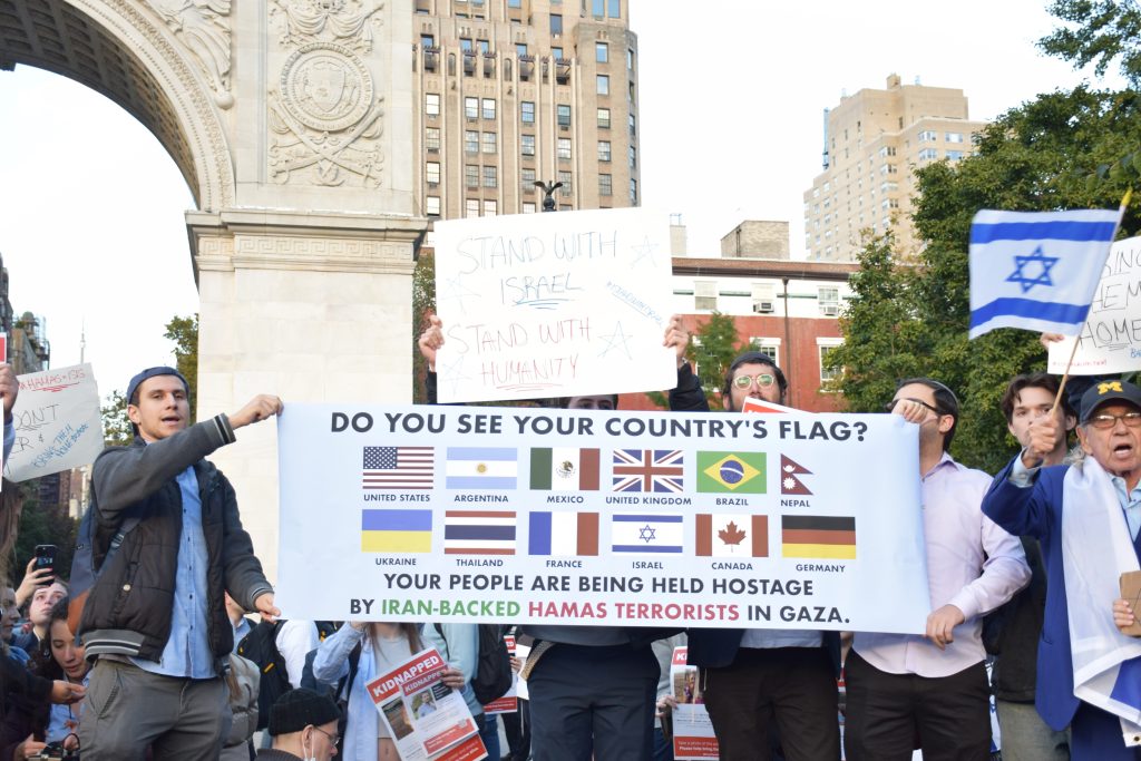 Washington Square Park’ta bir araya gelen Filistin yanlıları, İsrail’in Gazze’ye yönelik katliama varan sadırılarını kınayan bir gösteri düzenledi.
