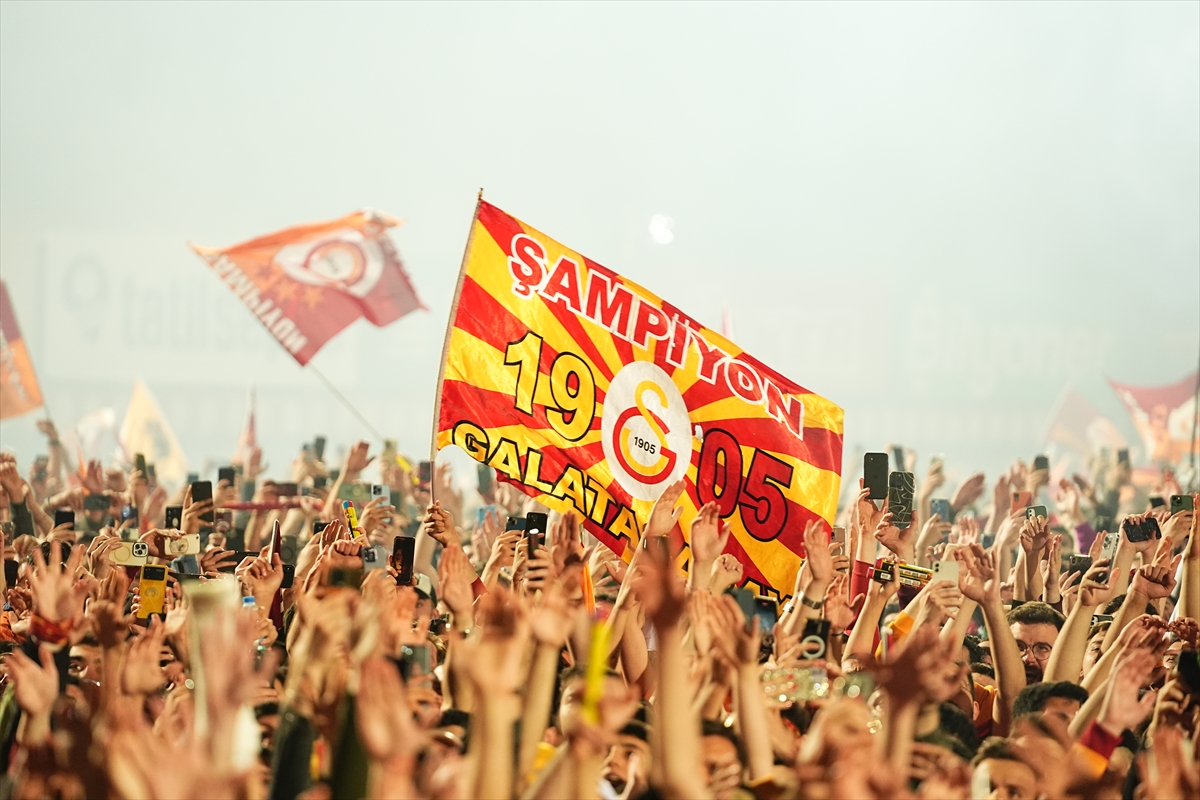 Taraftarlar daha sonra Türkevi’nin 16. sezonunda Galatasaray bayrağı astı. (AA)