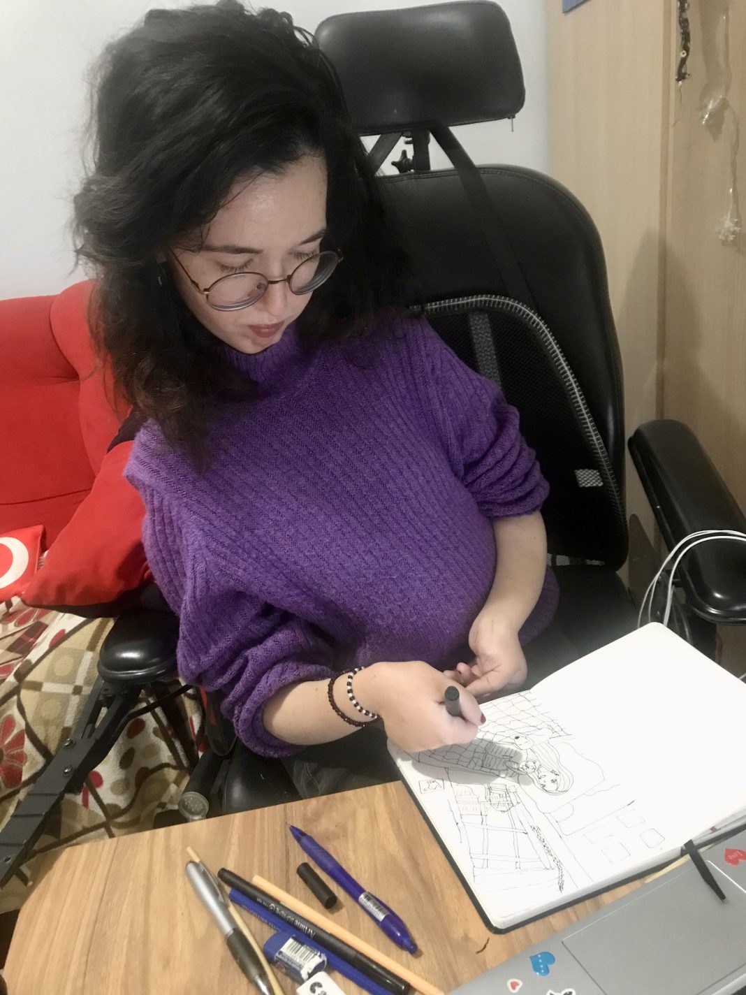 Meet Seda Karakaya, a strong-willed artist and disability rights champion who is from Türkiye. Despite life’s challenges, Seda confronts them with fierce determination and hope. Living with Spinal Muscular Atrophy (SMA) type 2, she navigates the world with her wheelchair, shaping her path with courage and creativity.