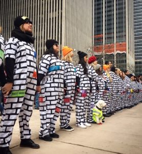 New York’taki protestoda en ilginç eylemlerden biri de ele ele tutuşanların oluşturduğu “insan duvarı” oldu.