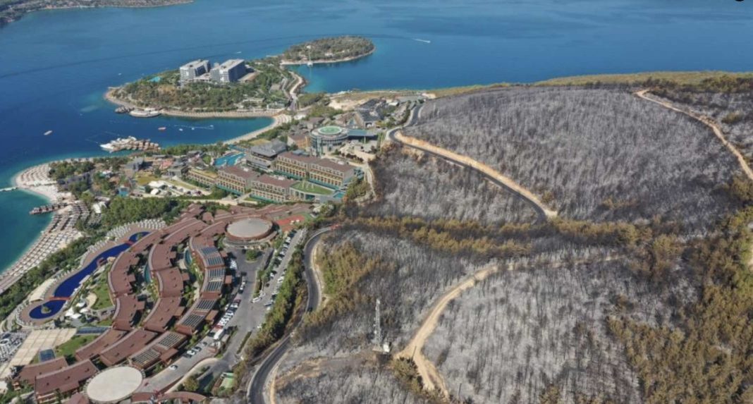 ISTANBUL (TURKISH JOURNAL) – Raging fires since Wednesday are threatening to derail Turkey’s tourism sector, wreaking havoc in touristic areas as well as destroying entire villages. Scorching heat, a drought and strong winds have contributed to the wildfires rapidly spreading across Turkey’s Mediterranean coastal areas including Bodrum, Antalya, Marmaris and Manavgat. Currently, three of 10 active fires are in the Antalya region. Turkish citizens and tourists have been forced to evacuate and entire forests burned to the ground. On Twitter, earlier on Saturday, the Minister of Agriculture and Forestry Bekir Pakdemirli reported that 88 of 98 fires are currently under control while neighborhoods in five provinces were declared disaster zones by the emergency and disaster authorities. A number of villages were totally destroyed by the fires as well as countless homes including some hotels.
