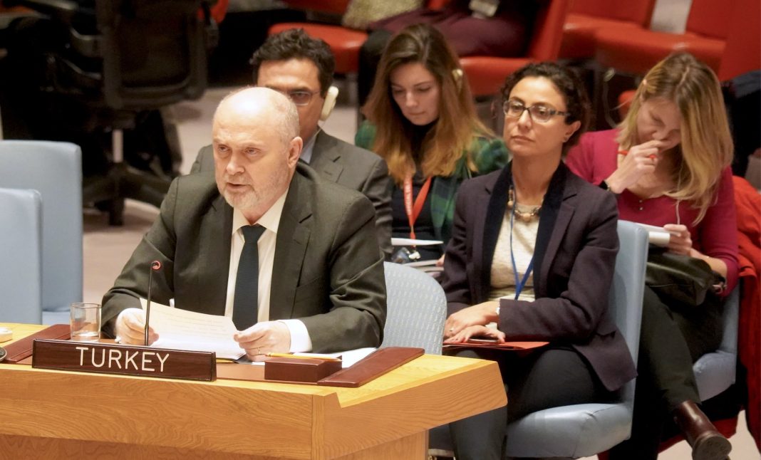 BİRLEŞMİŞ MİLLETLER (TURKISH JOUNRAL) – Selçuk Acar – Türkiye’nin Birleşmiş Milletler (BM) Daimi Temsilcisi Feridun Sinirlioğlu, BM Güvenlik Konseyi’nin (BMGK) olağanüstü toplantısında yaptığı konuşmada, “Türkiye savaş istemiyor ama güvenliği tehdit edilirse de güç kullanmakta tereddüt etmeyecek.” ifadesini kullanarak, “Türk askeri Suriye’de sivilleri korumak adına canı pahasına görevini sürdürüyor. Gözlem kulelerinden asla çekilmeyeceğiz…Sizlerden minnettarlık değil, sorumluluğu paylaşmanızı istiyoruz.” dedi.