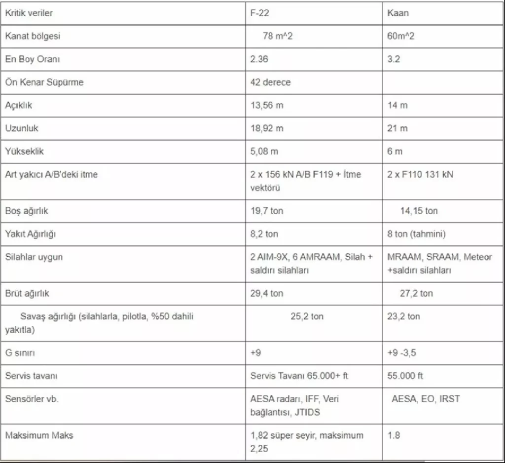 “KAAN, genel olarak ABD’nin F-22A Raptor hayalet savaş uçağına benziyor. Alüminyum burun ve titanyum merkez gövdeye sahip olan uçağın yüzeyleri, Türk şirketlerinin başlangıçta F-35 jetleri için ürettiği karbonlarla kaplı”