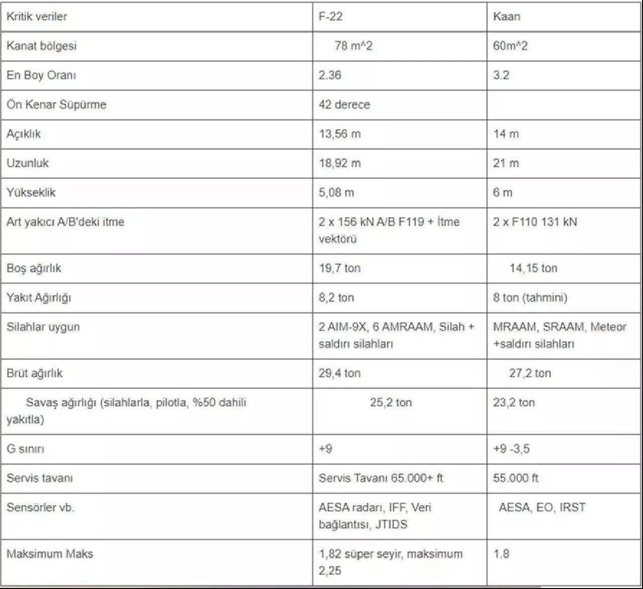 “KAAN, genel olarak ABD’nin F-22A Raptor hayalet savaş uçağına benziyor. Alüminyum burun ve titanyum merkez gövdeye sahip olan uçağın yüzeyleri, Türk şirketlerinin başlangıçta F-35 jetleri için ürettiği karbonlarla kaplı”
