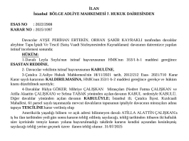 İstanbul BÖLGE ADLİYE MAHKEMESİ 7. HUKUK DAİRESİNDEN ESAS NO : 2022/2908 İlan...