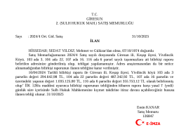 T.C. GİRESUN 2. (SULH HUKUK MAH.) SATIŞ MEMURLUĞU Sayı : 2024/4...
