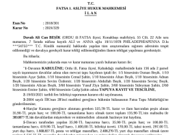 T.C. FATSA 1. ASLİYE HUKUK MAHKEMESİ İLAN Esas No: 2018/301 ilan...