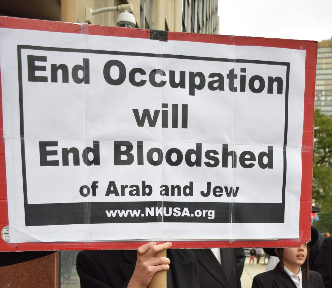 IfNotNow ve Barış İçin Yahudi Sesi adlı sosyal platformlar tarafından organize edilen gösteri için bir grup, başkentteki Farragut Meydanı’nda toplandı.